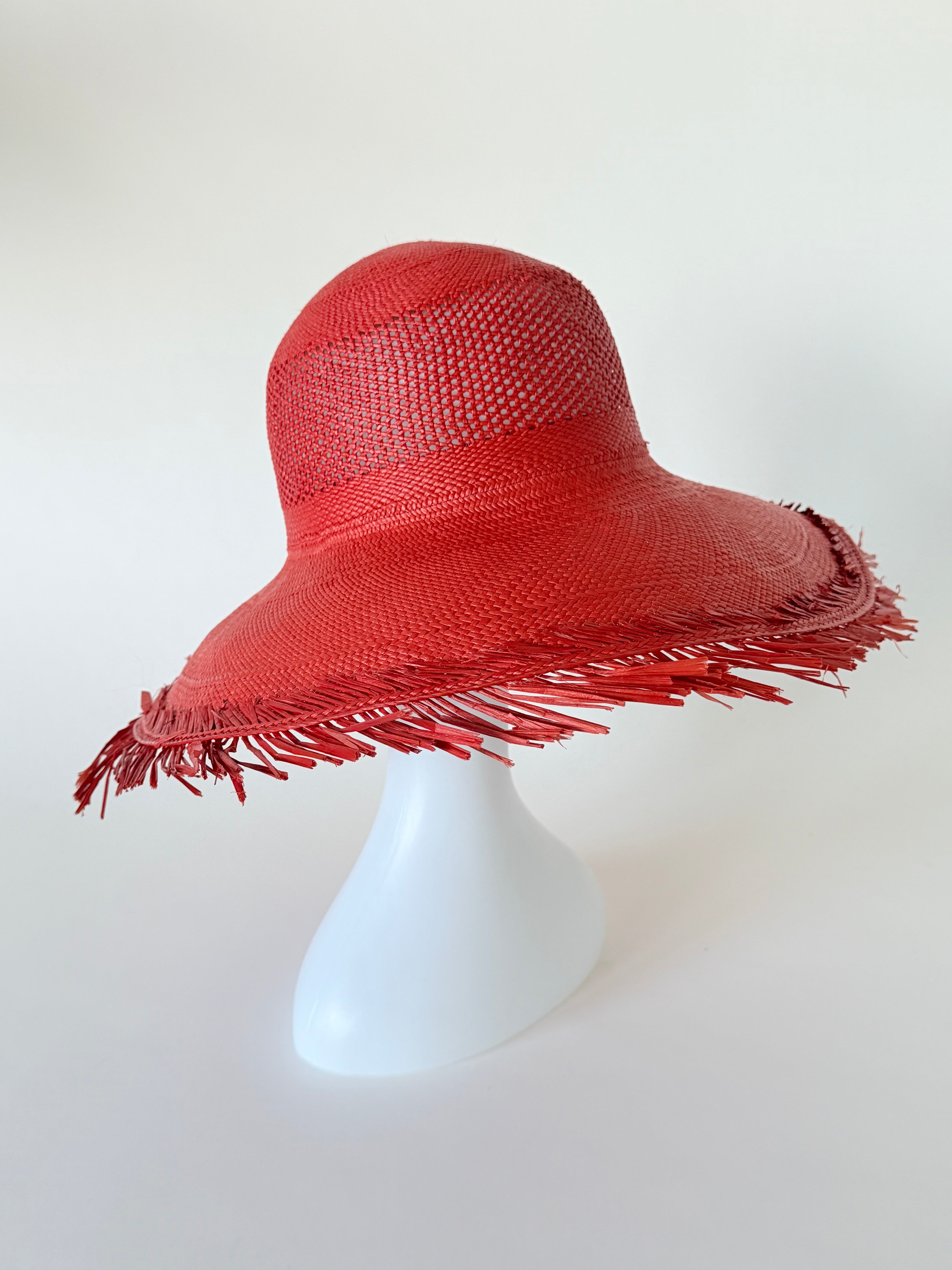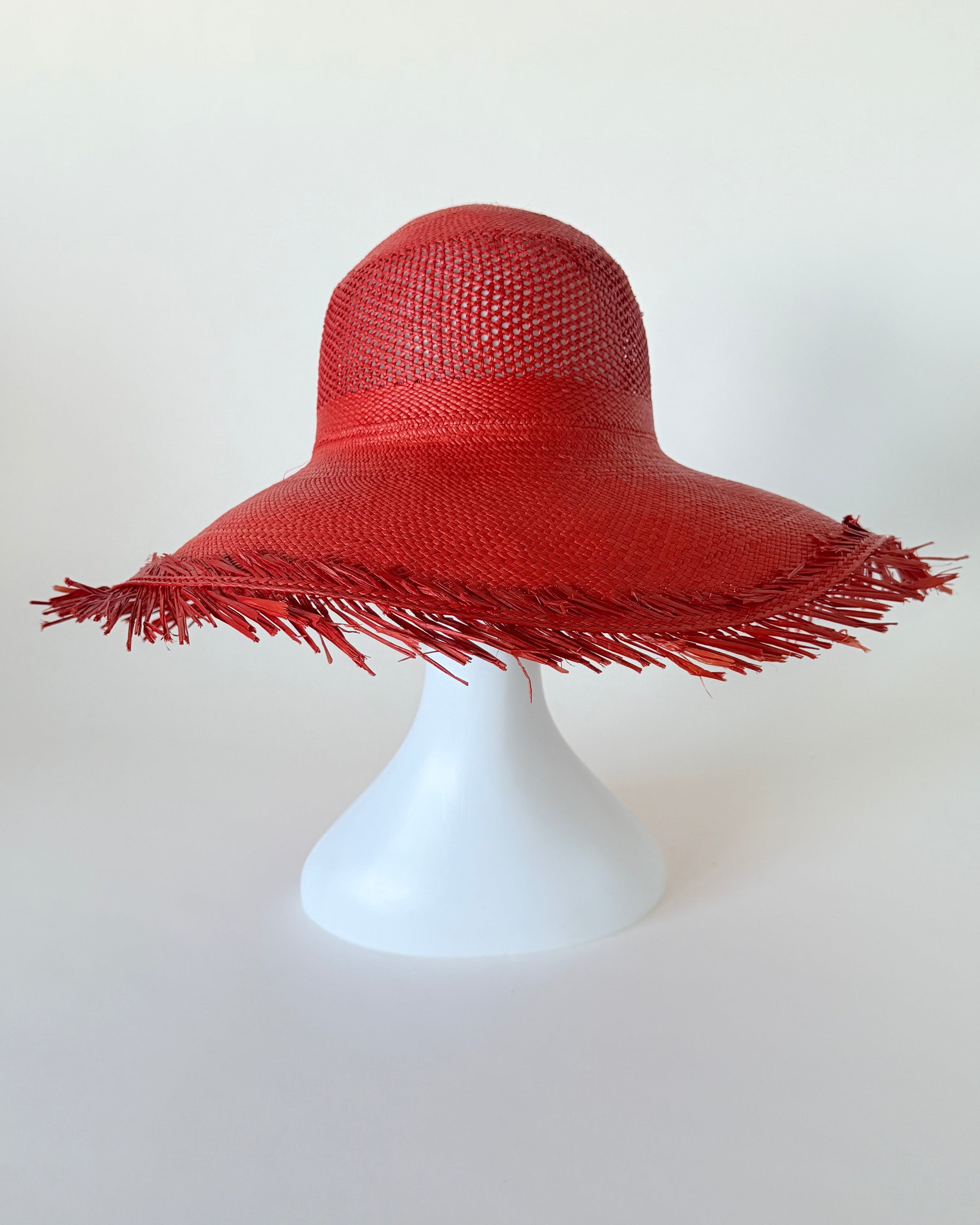 Sloped Brim Flat Top Hat w. Vent Red Toquilla Straw