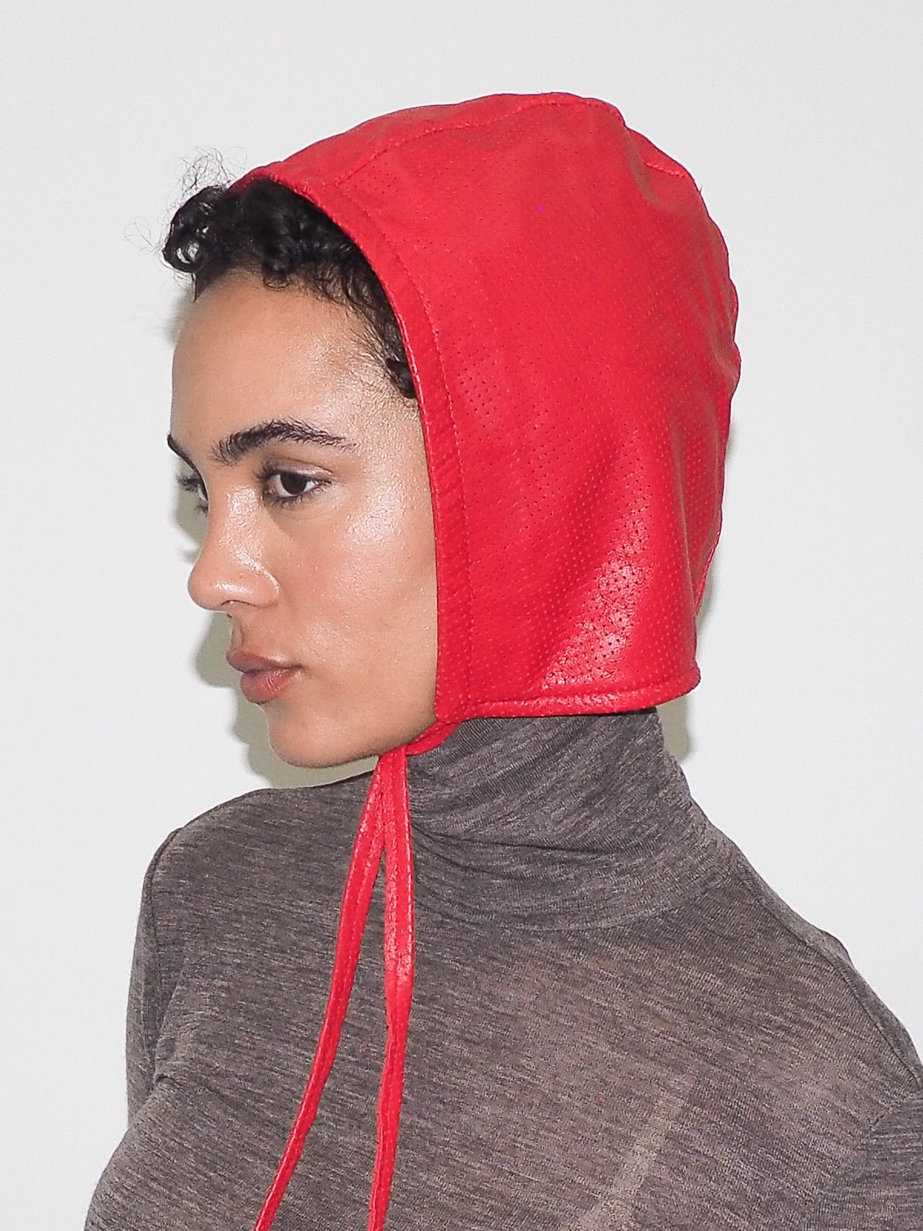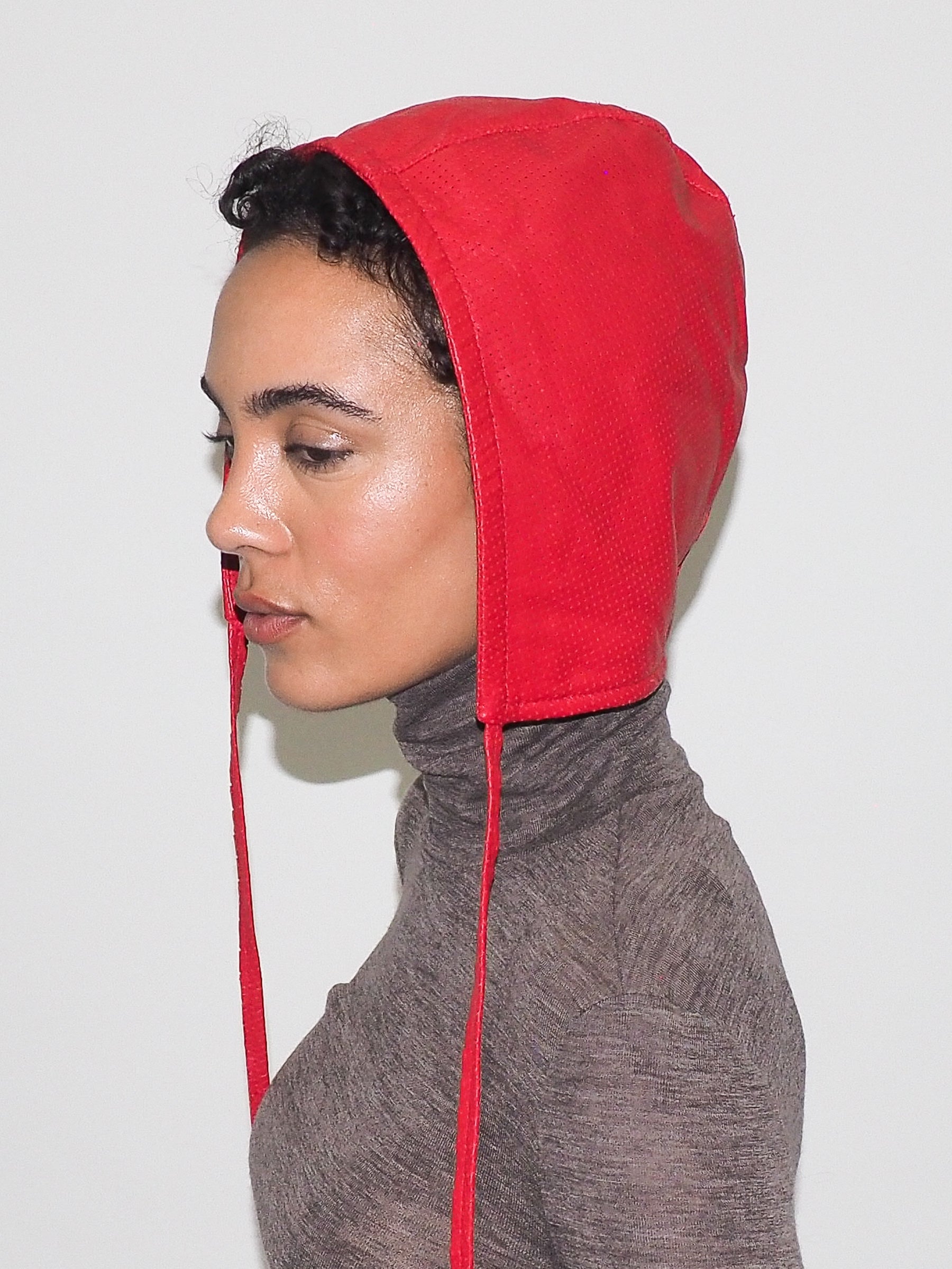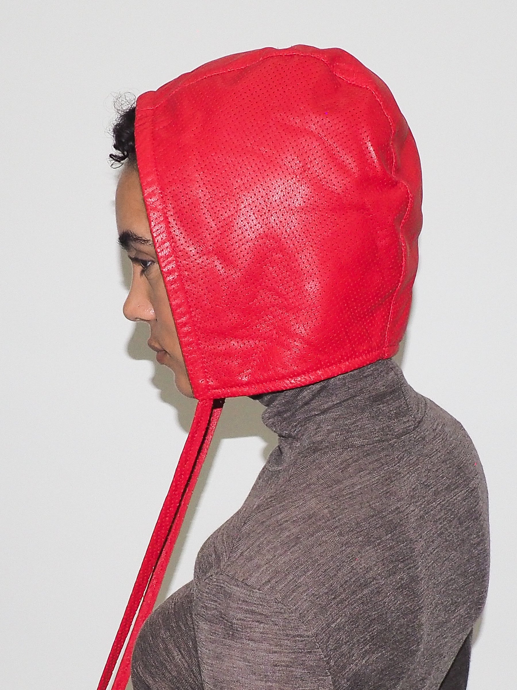 A tie front sculpted flight hat, polar fleece lined for warmth. Made from supple perforated Italian lambskin.